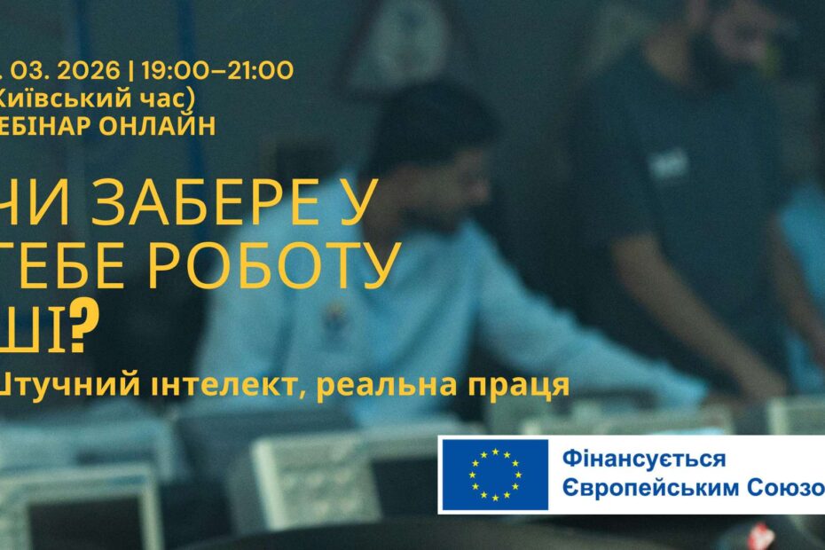 Дата: 11.03.2026, 19-21:00 UA час, 18-20:00 PL/CZ час Заголовок: “Чи забере у тебе роботу ШІ? Штучний інтелект інструмент керівників чи працівників?” Штучний інтелект (ШІ) дуже часто представляють як революційну технологію, але за величезним ажіотажем ховається… Чи забере у тебе роботу ШІ? Штучний інтелект інструмент керівників чи працівників?